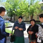 Георгиевские ленточки раздают на центральных улицах Цхинвала, в парках, на остановках и в других общественных местах.