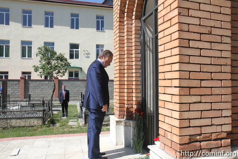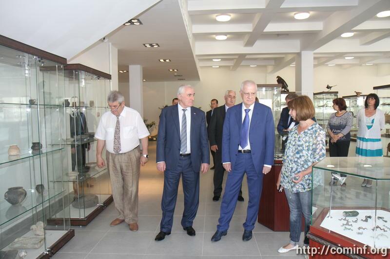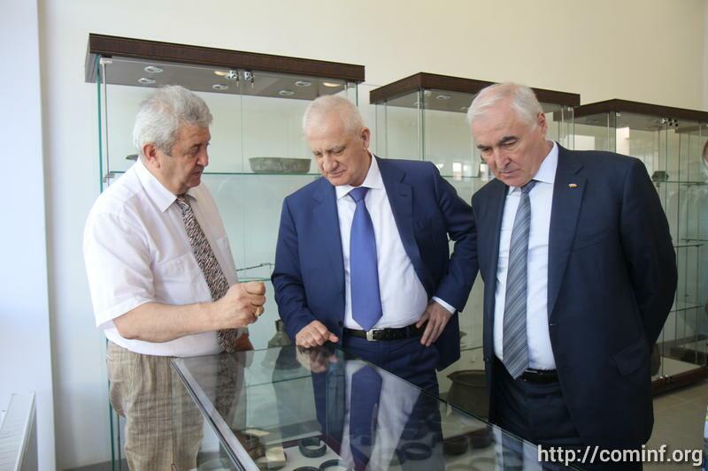Today, Leonid Tibilov, Temerlan Agouzarov, Alexander Totoonov visited the National Museum of the Republic of South Ossetia, and laid flowers at the Memorial chapel in the yard of the Tskhinval school №5.