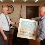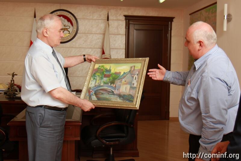 On behalf of the Ossetian artists, participants of the exhibition "Reflection of Europe" Radion Pukhaev presented to the President two paintings by Boris Gabaraev and Lavrenty Kasoev and presented letters of gratitude to Leonid Tibilov from the leadership of the International Association of the Ossetian society "Revival" and the Russian ambassador to Belgium Alexander Romanov for assistance in organization of the Days of Ossetian Culture in Europe.
