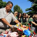 Hundreds of the South Ossetian residents brought water and toys to the monument on Tuesday to honor the memory of the victims of the monstrous terrorist attack. Each toy is a symbol of innocence, and each drop of water is a sign of care for those who passed away and for those who survived this tragedy.