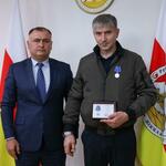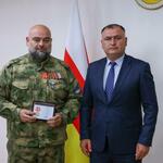 David Gabaraev, a volunteer of the Separate Sabotage and Reconnaissance Detachment "Alania," Nikolai Tuaev, Deputy Commander for Military and Political Work of the Separate Sabotage and Reconnaissance Detachment, and Roland Shavlokhov, Advisor to Chairman of the Association of Veterans of the Special Military Operation in the Republic of North Ossetia-Alania, were awarded the "For Military Labor in the Name of Peace" medal.