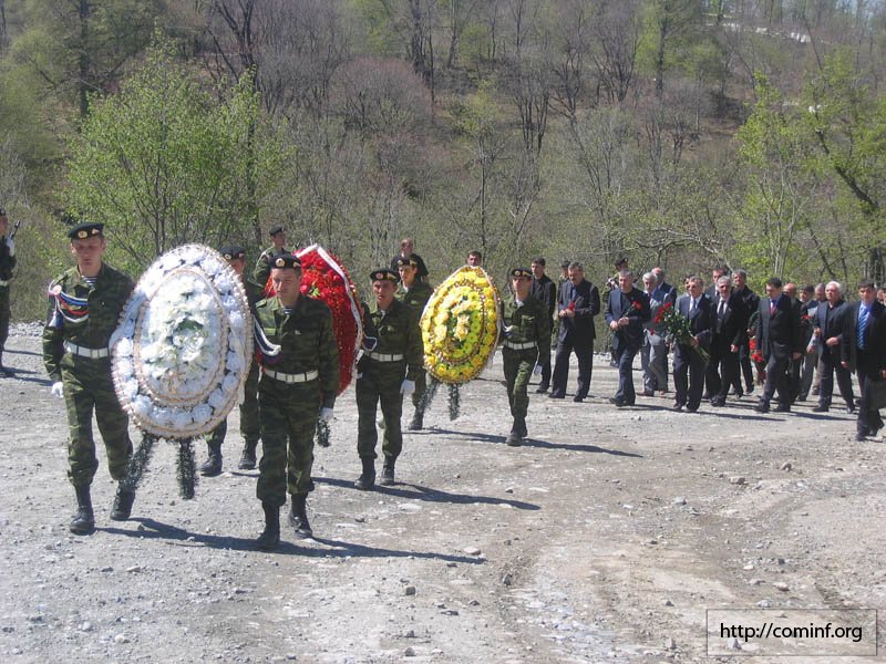 Люди несли венки к месту трагедии. Свои венки возложили Президент Эдуард Кокойты, Председатель Правительства Юрий Морозов, Председатель Парламента Знаур Гассиев, министры, руководители силовых структур, гости. На траурных мероприятиях присутствовали представитель посла РФ в Грузии Василий Корчмарь, глава Представительства Международного Комитета Красного Креста в РЮО г-жа София Пагсли и министр культуры Северной Осетии Эдуард Галазов.