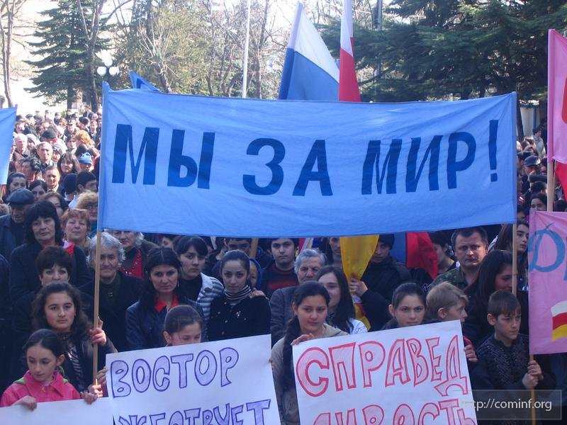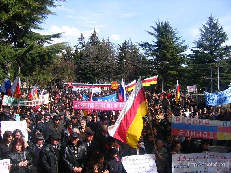 Каждый из выступающих высказал мысль о том, что «да мы хотим мира, но мы не видим его вместе с теми, кто нас хотел уничтожить...». Это мнение тех, кто сегодня пришел на театральную площадь: старики и дети, женщины и мужчины, министры и простые граждане... О том, что здесь хотят мира, говорили и плакаты в руках детей: «We are for peace all of the world», «Мы за мир». Транспарант «Осетия 1774 Россия» еще раз напомнил, что Южная Осетия в составе России уже более 230 лет. Наверно поэтому студент Юго-Осетинского государственного университета, Бежанов Ахсар, так уверенно обратился к депутатам ГД РФ: «Признайте наше право на самоопределение и нашу Республику». «Признание независимости и настоящее, сегодня слова синонимы», – заявил один из участников акции.