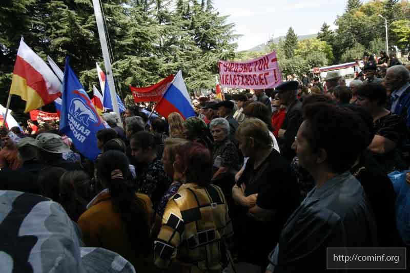 На митинг пришли сотни цхинвальцев. С обвинениями в адрес Грузии и стран ее вооружавших, на сегодняшнем митинге выступили пострадавшие во время грузинской агрессии в начале 90-х ХХ века и в августе 2008 года.