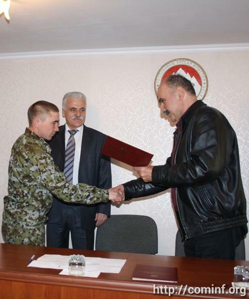 В столице Южной Осетии прошла церемония награждения представителей Пограничного управления ФСБ России почетными грамотами парламента Республики в связи с двухлетней датой ввода российских пограничных войск на территорию Южной Осетии. В церемонии награждения приняли участие спикер парламента РЮО Станислав Кочиев, вице-спикер парламента РЮО Зураб Кокоев, депутаты парламента РЮО.