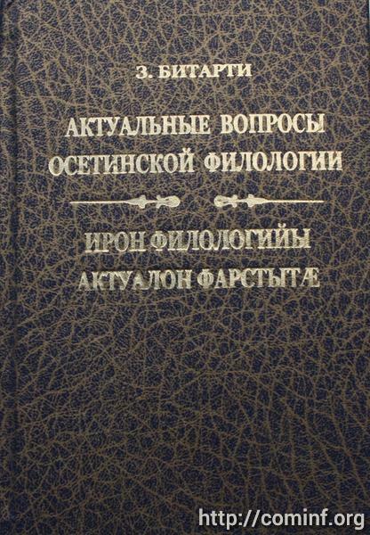 В Цхинвале вышла в свет книга старшего научного сотрудника отдела языка, ученого секретаря Югоосетинского научно-исследовательского института (ЮО НИИ), преподавателя осетинского языка Югоосетинского государственного университета имени А. Тибилова, кандидата филологических наук Зои Битарти «Ирон филологийы актуалон фарстытае» («Актуальные вопросы осетинской филологии»).