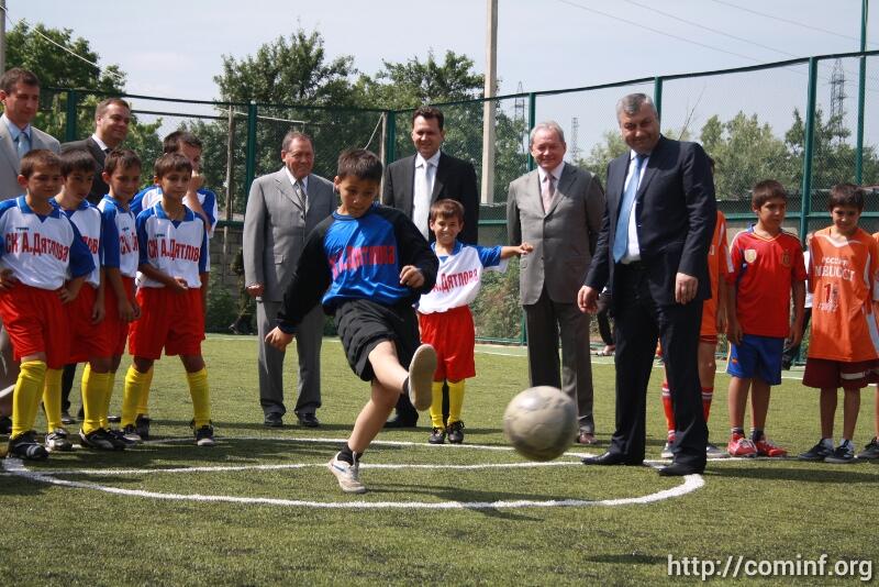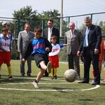 В Цхинвале состоялось открытие новой спортивной площадки для игры в мини-футбол, искусственное покрытие для которой было приобретено на средства жителей Архангельской области России.