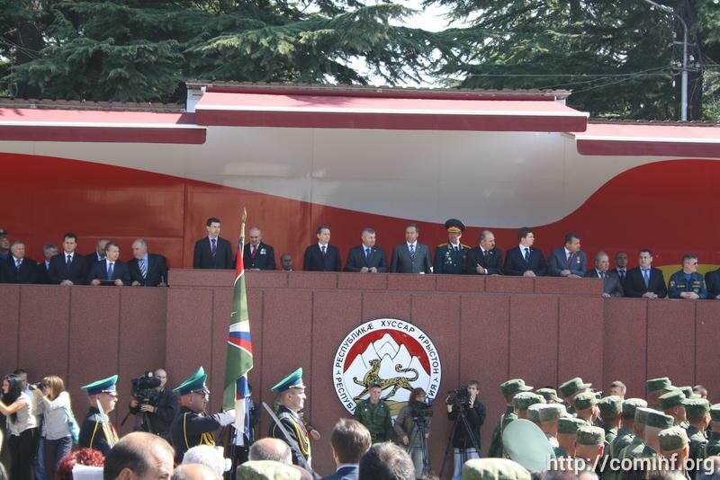 Военный парад цхинвальского гарнизона, посвященный 21-летию со дня провозглашения Республики Южная Осетия, состоялся сегодня на главной площади Цхинвала. В параде приняли участие личный состав Министерства обороны Южной Осетии, подразделения Министерства внутренних дел, пограничные войска, кадеты, а также военнослужащие четвертой российской военной базы в Цхинвале и российские пограничники. На трибуну поднялись руководство Республики во главе с президентом Эдуардом Кокойты, делегация Российской Федерации во главе с руководителем администрации президента России Сергеем Нарышкиным, чрезвычайный и полномочный посол РЮО в РФ Дмитрий Медоев, чрезвычайный и полномочный посол РФ в РЮО Эльбрус Каргиев и другие.