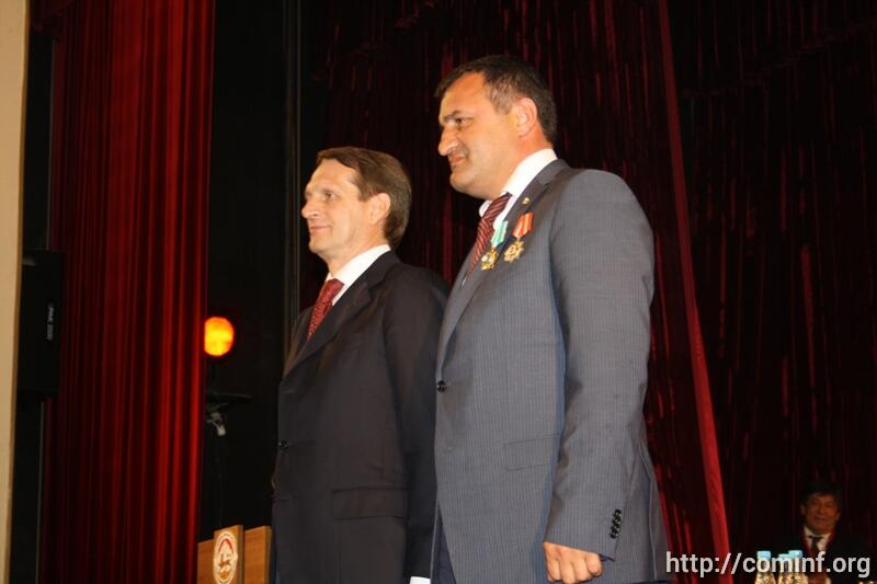 «Это высокая оценка вашего труда, вашего личного вклада в укрепление двухсторонних отношений между двумя странами - Российской Федерацией и Южной Осетией. Россия и Южная Осетия всегда были вместе. Мы всегда были верны духу дружбы и добрососедства, а в самые сложные минуты приходили на помощь друг другу. Так было и в тяжелые дни августа 2008 года, когда граждане Южной Осетии и России вместе отразили вооруженную агрессию режима Саакашвили», - сказал Нарышкин.
