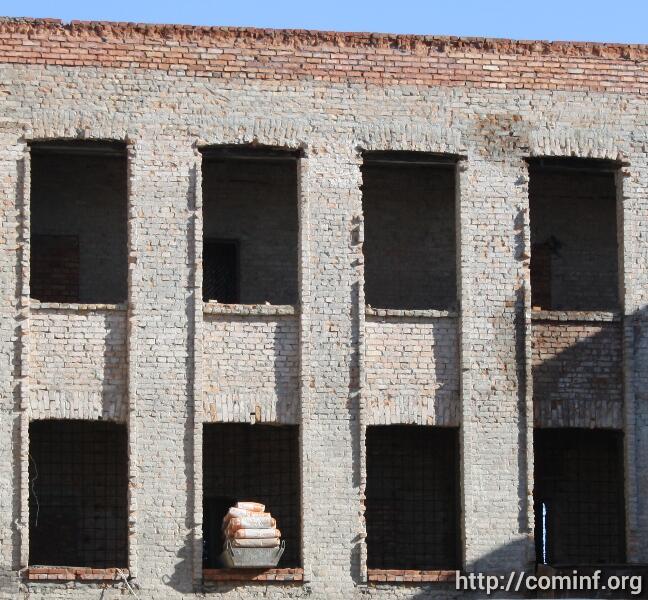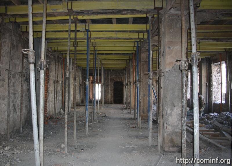 «Внутренние стены оштукатурены примерно на 50%. К сожалению, погода не способствует проведению работ по штукатурке внешних стен. Параллельно ведется работа по укреплению стен специальной сеткой, установка оконных рам и прочие строительные работы», — сказал прораб.