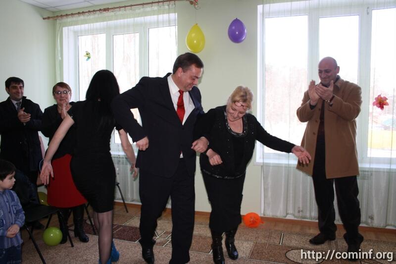 Для почётных гостей был организован праздничный концерт, подготовленный коллективом детского сада. Перед гостями со стишками, песнями и танцами выступили воспитанники детсада. В праздничном представлении поучаствовали и гости мероприятия.