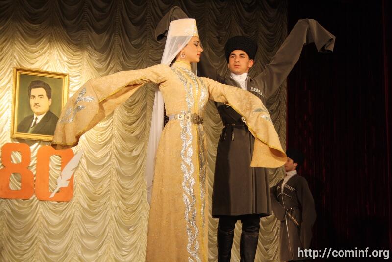 В перерывах между выступлениями студенты и школьники читали произведения поэта, творческие коллективы Республики исполняли осетинские песни и танцы.