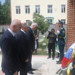 Президент Южной Осетии Леонид Тибилов и члены российской делегации во главе с заместителем главы МЧС РФ Александром Волосовым, возложили траурные венки и цветы к Мемориалу павшим защитникам Родины во дворе цхинвальской школы №5.