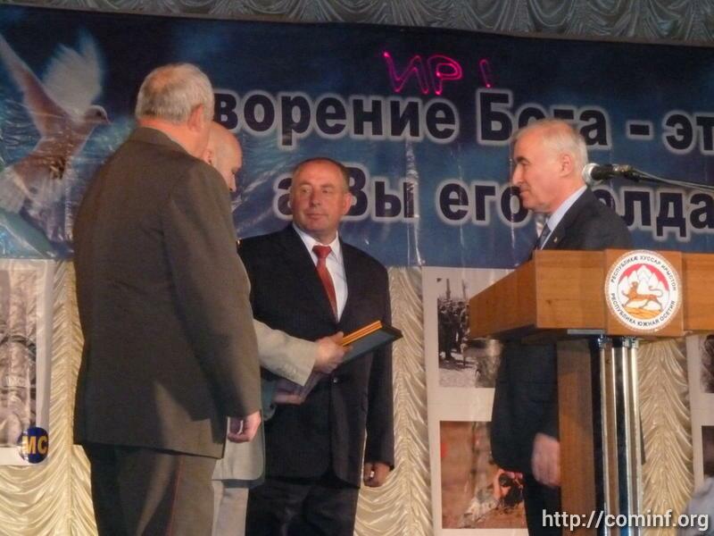 Далее президент наградил высокими государственными наградами наградил ряд представителей Миротворческих сил и Смешанной контрольной комиссии - Казбек Фриев, Марат Кулахметов, Теймураз Кусов, Солтан Каболов, Юрий Попов, Юрий Ковалев и другие.