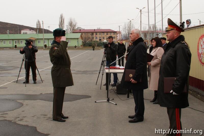 Далее состоялось награждение военнослужащих базы государственными наградами Южной Осетии. В частности, командиру базы, президент вручил «Орден Дружбы», ряд офицеров части были награждены медалями и благодарственными письмами.