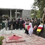 Участники церемонии возложили к мемориалу «Гирлянду Славы», венки и цветы, одним из школьников младших классов был зажжён огонь «Вечной Славы», после чего к собравшимся обратился президент Республики.