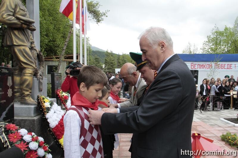 В ходе мероприятия прошло и посвящение учащихся Дзауской средней школы в пионеры. Леонид Тибилов повязал одному из пионеров галстук и пожелал ему успехов в учебе.