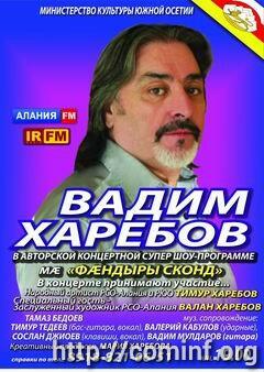 В столице Южной Осетии З0-31 мая состоится авторский концерт югоосетинского эстрадного певца Вадима Харебова — «Мае фаендыры сконд». Организатором мероприятия выступило Министерство культуры РЮО.