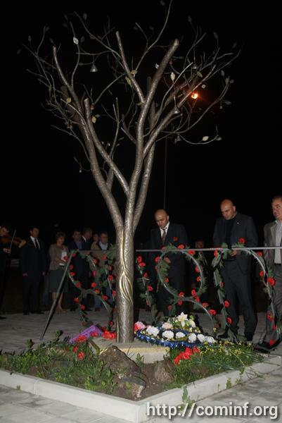 Затем участники акции почтили память погибших мирных жителей Южной Осетии и защитников Цхинвала. Возложение цветов и венков состоялось в «Музее сожженных душ» у въезда на Зарскую дорогу, по которой женщины, старики и дети спасались от ужасов войны. Почтить память жертв войны здесь собрались десятки людей.