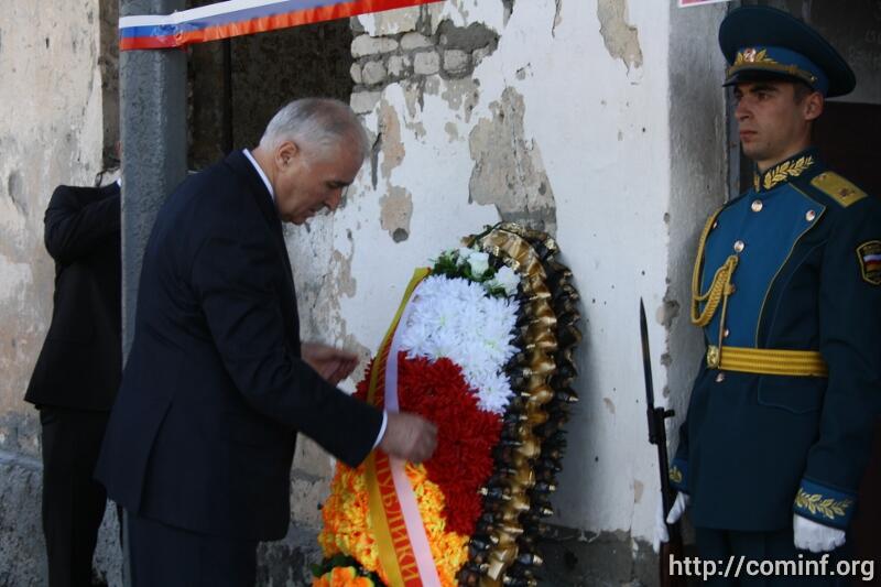 Участники церемонии побывали на Мемориальном кладбище во дворе Цхинвальской средней школы №5, в разрушенных в августе 2008 года казармах российских миротворцев («Верхний городок»), а также на месте будущего мемориального комплекса «Защитникам Осетии».