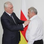 Далее состоялось награждение дорожников почетными грамотами, медалями «В ознаменование 20-летия Южной Осетии», также им присвоили звания заслуженного строителя Республики и объявлены благодарности.
