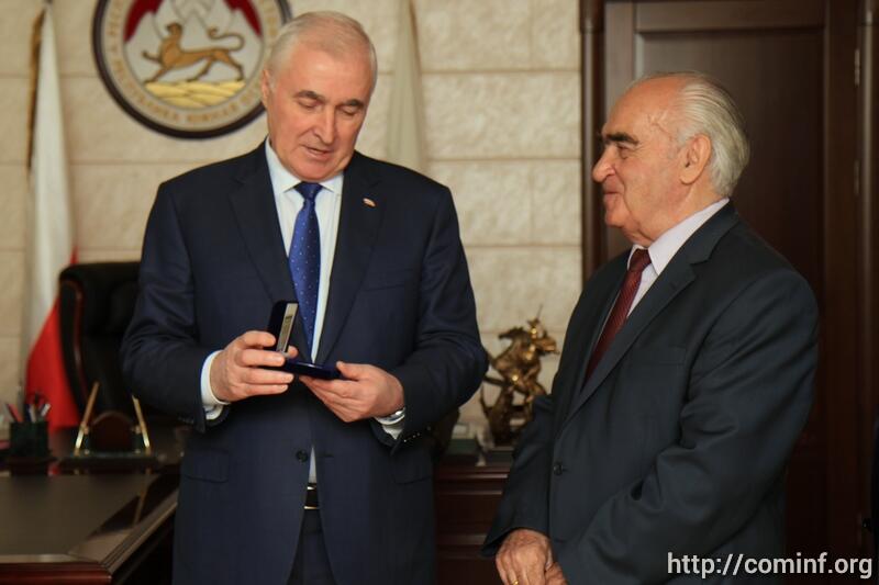 «В преддверии празднования 155-летнего юбилея Коста Левановича Хетагурова Национальному банку Республики Южная Осетия было поручено произвести именную монету выдающегося писателя, которую мы сегодня хотим Вам вручить. Будем надеяться, что эта монета, находясь на Вашем рабочем столе, всегда будет придавать Вам больше сил и энергии в работе», – сказал Президент.