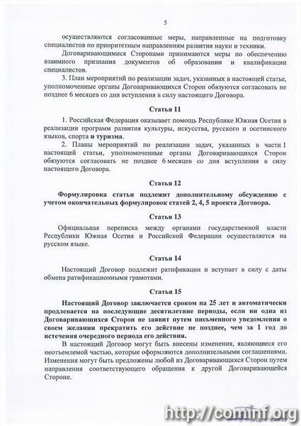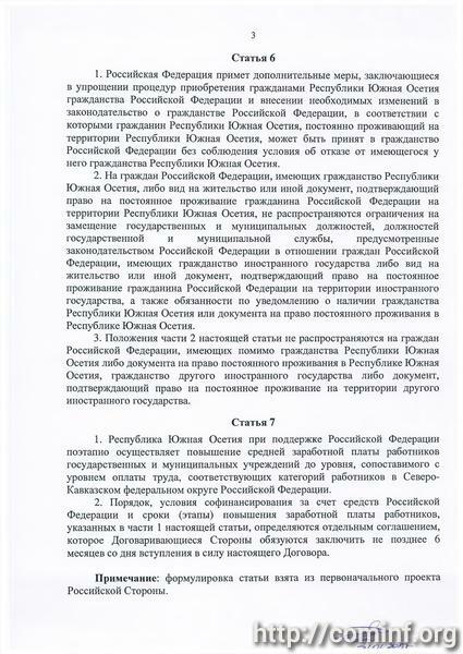 Политическим Советом выражено согласие с предварительным вариантом проекта Договора, представленным российской стороной с учетом предложений югоосетинской стороны, который принят для дальнейшего обсуждения в рамках совместной рабочей группы.