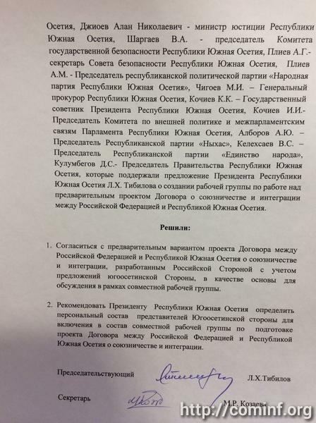 Кроме того, Политсовет предложил Президенту Республики Южная Осетия определить персональный состав представителей югоосетинской стороны для включения в состав совместной рабочей группы по подготовке проекта Договора.
