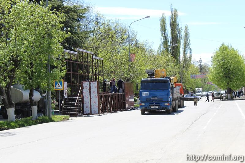 «На городских улицах развешаны поздравительные утяжки и расклеены баннеры, - отметили в пресс-службе. - Также ведутся работы на театральной площади, здесь идет монтаж трибуны и сцены для праздничного концерта, который пройдет вечером 9 мая».