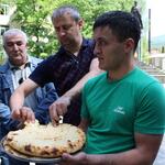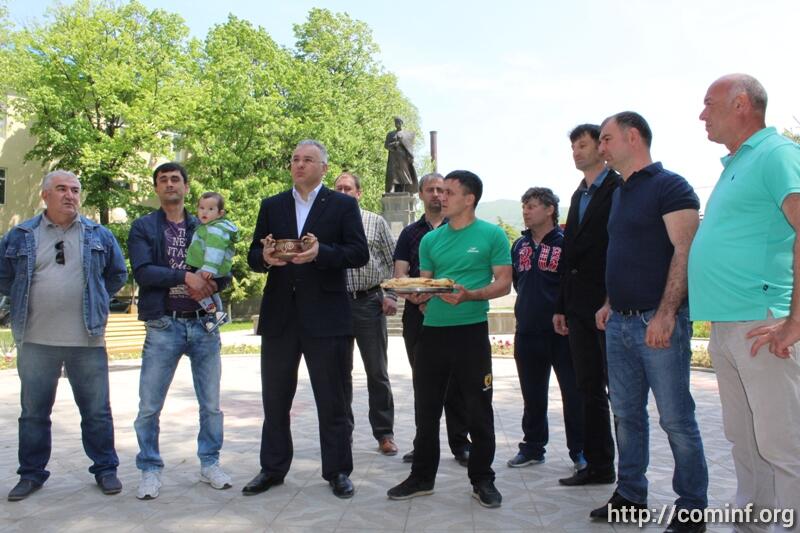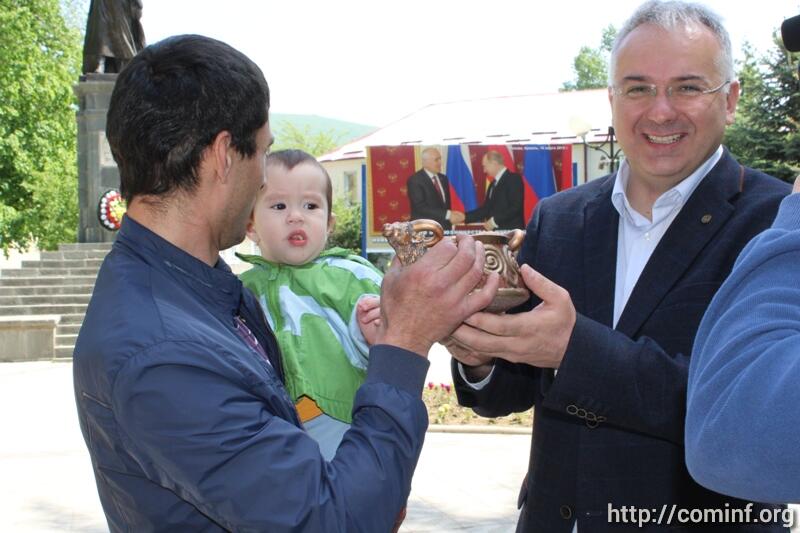 Перед началом работ, собравшиеся в сквере по осетинскому обычаю с традиционными тремя пирогами и чашей с ритуальным пивом вознесли молитвы к Богу и всем святым.