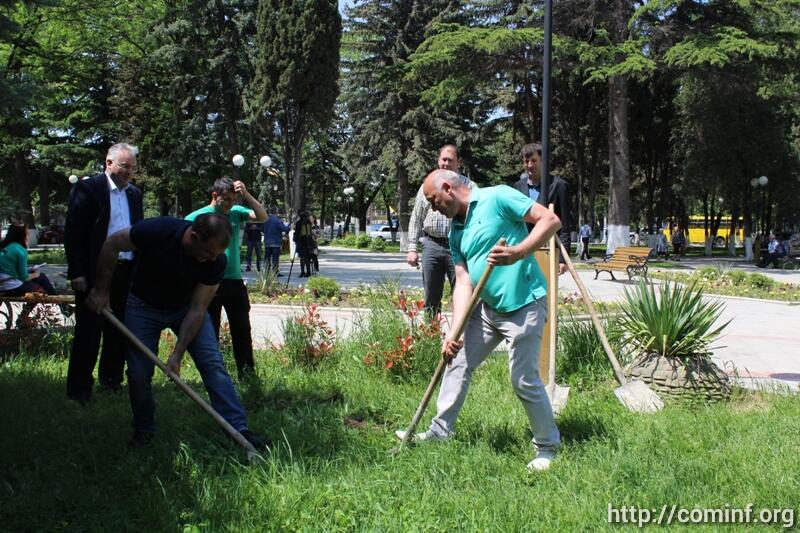 Все желающие из числа собравшихся в сквере Коста Хетагурова смогли принять участие в первом этапе строительства фонтана.