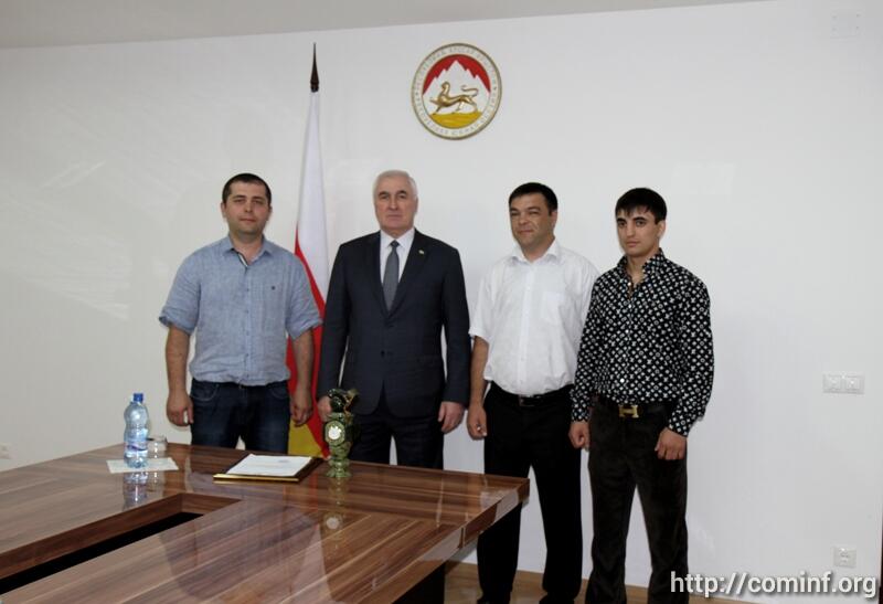 Президент Южной Осетии Леонид Тибилов встретился с тренерами Федерации любительского бокса РЮО Муратом Кокоевым и Ацамазам Дзигоевым, чьи воспитанники с соревнований по боксу, прошедших недавно в Северной Осетии, вернулись с золотыми медалями.