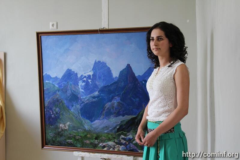 Далее были представлены дипломные работы Альбины Бекоевой «Древнее святилище в селе Эдис», Арианы Габараевой «Родной Аул», Сюзаны Тибиловой «В объятиях гор», Агунды Козаевой «Святилище Реком», Сослана Тибилова «Величие и бесконечность гор».