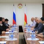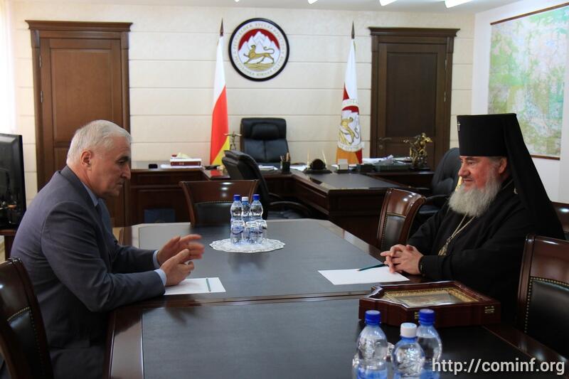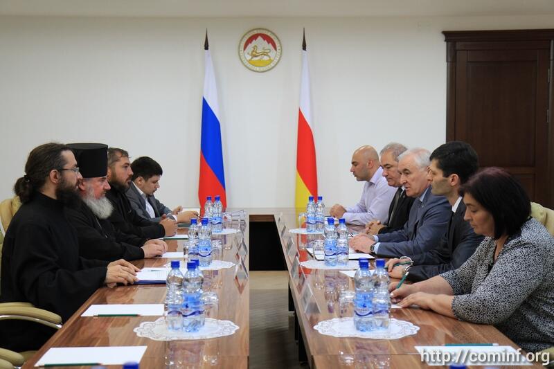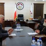 Состоялась встреча Президента Южной Осетии Леонида Тибилова и Архиепископа Владикавказского и Аланского Зосимы. На встрече также присутствовала Уполномоченный при Президенте РЮО по делам религии Соня Хубаева.