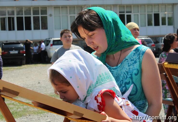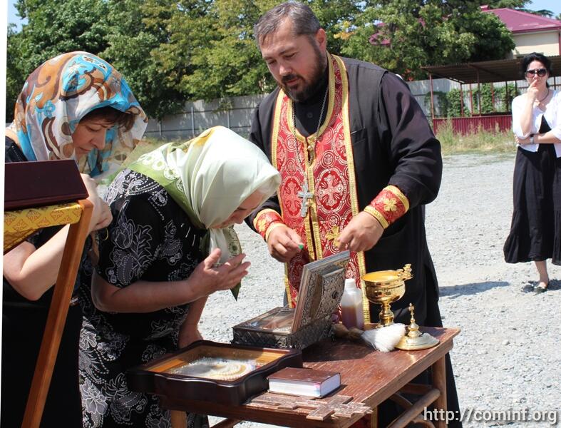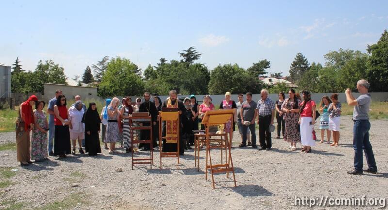 Сегодня же на месте строительства храма Отец Сергий (Кокоев) священник Русской православной церкви провел благодарственный молебен на начало всякого благого дела и благословил всех пришедших.