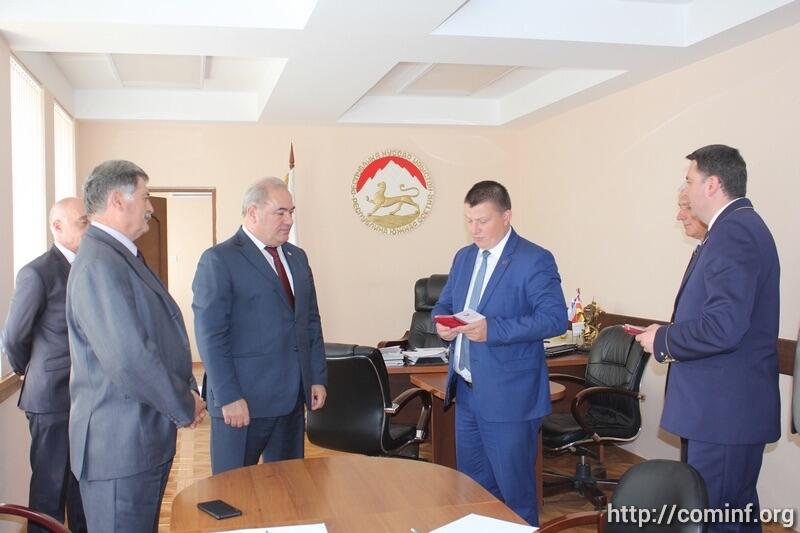 Глава делегации сообщил также, что по решению Президента ПМР Евгения Шевчука Доменти Кулумбегов и Эрик Пухаев награждаются государственной наградой Приднестровской Молдавской республики – медалью «За укрепление международного сотрудничества», и зачитал Указ.