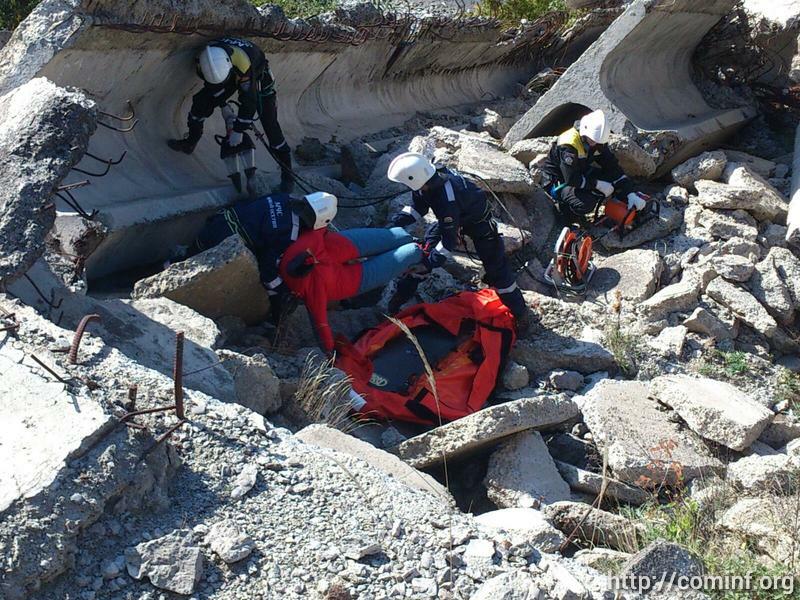 По легенде занятий спасателям нужно было спустить потерпевшего с отвесной скалы, а затем сплавить его по реке до того места, куда могли подъехать врачи МЧС.