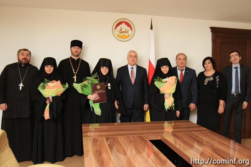 Президент выразил благодарность настоятельнице и сестрам Аланского Богоявленского монастыря за помощь, которую они оказали жителям Южной Осетии во время грузинской агрессии в августе 2008 года.
