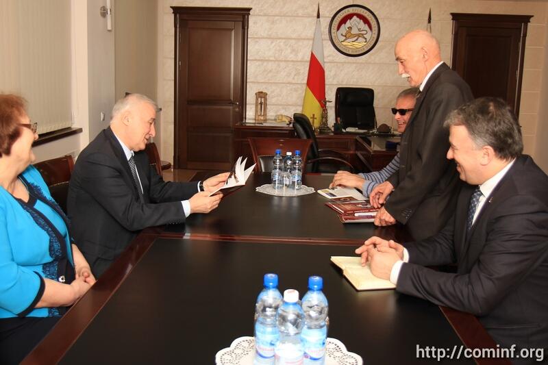 За личный вклад в дело популяризации осетинской национальной культуры и наследия видного осетинского поэта Коста Хетагурова, увековечения его памяти за пределами Осетии глава государства наградил гостя Почетной грамотой Республики Южная Осетия, а также вручил именную монету, выпущенную к 155-летию со дня рождения Коста Хетагурова.