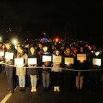 Делегация также приняла участие в памятной акции, прошедшей ночью. Участники акции пронесли в руках таблички с именами погибших бойцов в Мартовском наступлении. Прошедшую, сгруппировавшись в форме цифры 222 через мост в Эшере молодежь, встретили матери погибших бойцов.