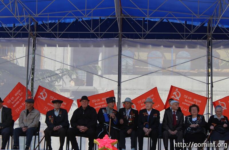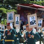 В завершение парада прошла акция «Бессмертный полк», в ходе которой по театральной площади Цхинвала прошагали колонны людей с фотографиями павших героев Великой Отечественной войны.