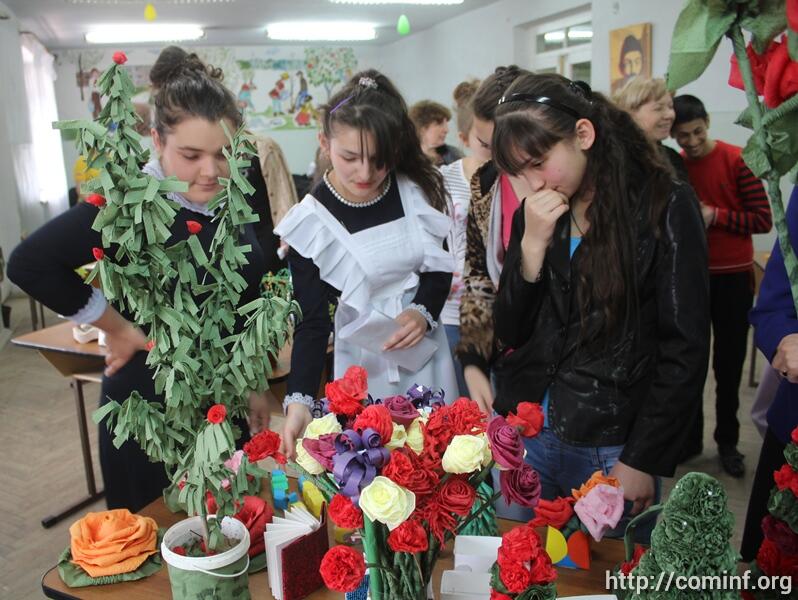 «Бумажные поделки сделаны в основном учащимися коррекционных классов школы-интернат, - уточнила Габараева. – Более сложные работы выполнены руками старшеклассниц, которые не первый год здесь занимаются».