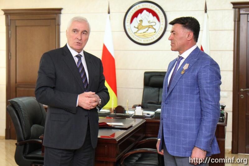 В завершение встречи Президент вручил Леониду Дзапшба Медаль «В ознаменование 25-летия Республики Южная Осетия».