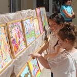 «Здесь представлены две очень интересные выставки,- сказала Джиоева.- Эти рисунки нарисовали наши ребята, которые посещают учебные группы Дворца, также на выставке представлены работы наших педагогов».