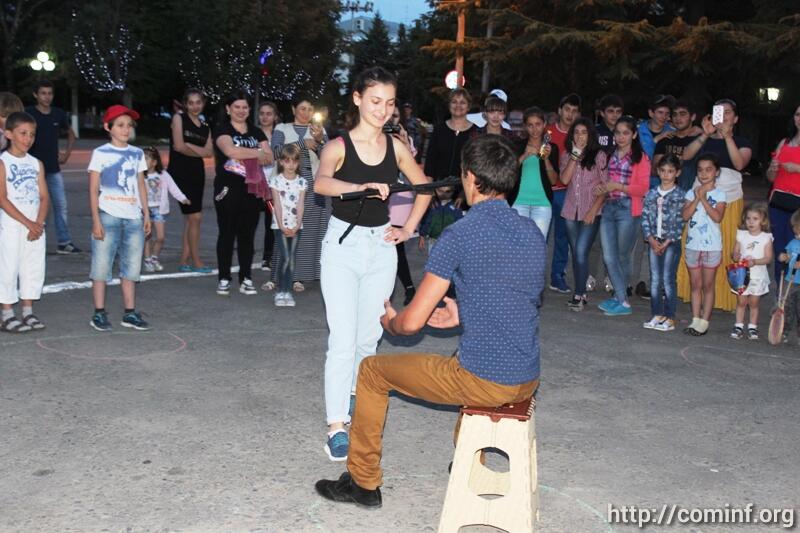 В конце этой рабочей недели Театральная площадь Цхинвала собрала молодежь и детишек со своими мамами на настоящий осетинский национальный праздник – народные игры и танцы.