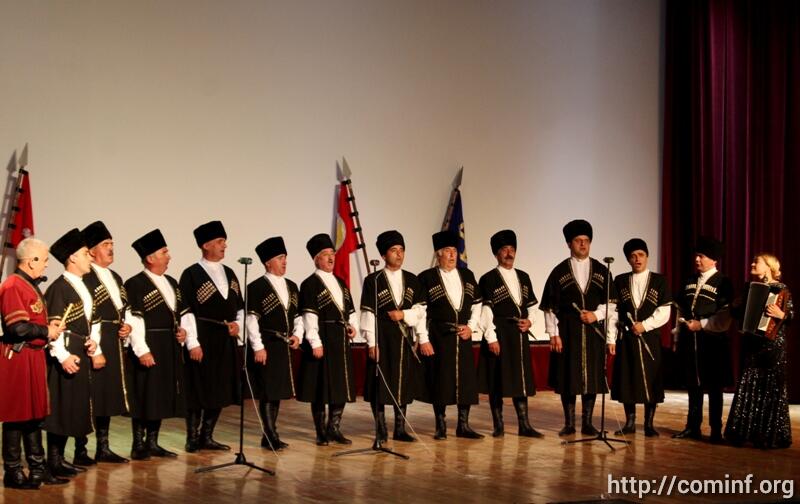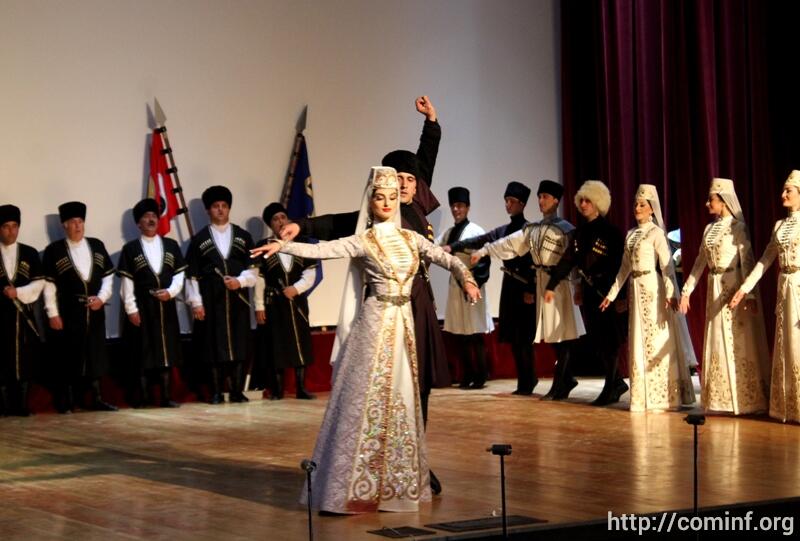 В этот вечер зрителя порадовал прекрасной хореографией не только танцевальный ансамбль «Симд»-а, но мужской хор госансамбля который выступал под аккомпанемент Заслуженной артистки РЮО певицы, гармонистки Залины Саппиевой.