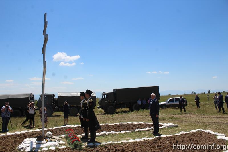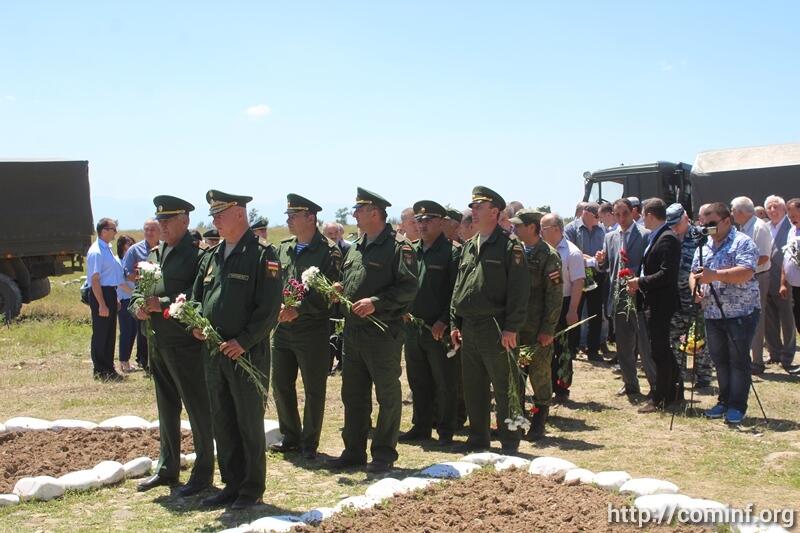 Памятная церемония началась с возложения венков и цветов к Поклонному кресту рядом со сгоревшим в 2008 году зданием, где располагались казармы российского миротворческого контингента. Далее цветы и венки были возложены и к памятнику Герою России майору Денису Ветчинову, погибшему в Южной Осетии в боях по отражению августовской агрессии, а также к памятнику погибшим миротворцам на территории Пограничного управления ФСБ РФ в РЮО.