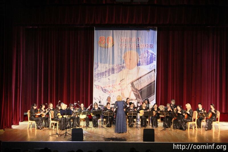 Во второй части концерта, зрителя ждал сюрприз – за открывшимся занавесом предстал Национальный государственный ансамбль народных инструментов РСО-Алания, которым уже много лет руководит сам Булат Газданов.