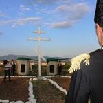 Возложение венков и цветов продолжилось в «Музее сожженных душ» - у въезда на объездную Зарскую дорогу, по которой пытались выехать мирные жители из Цхинвала во время августовской войны.