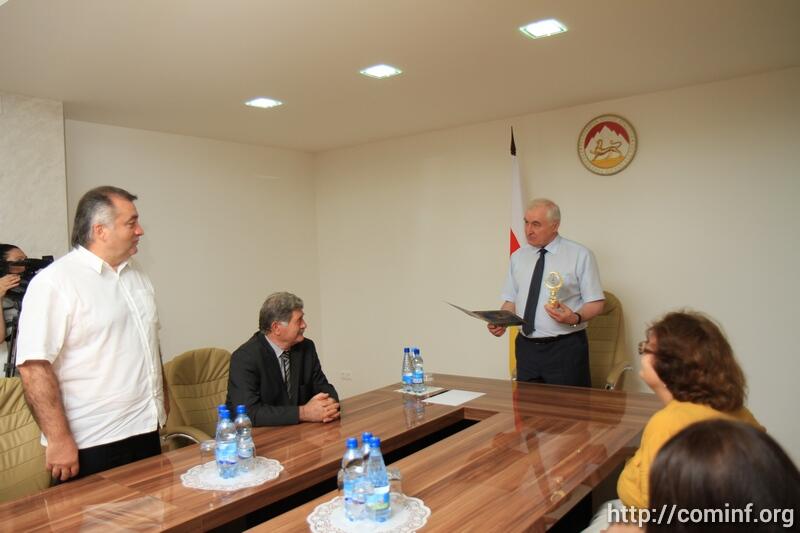 На встрече также присутствовали заместитель Председателя Правительства Эрик Пухаев, Министр культуры Мадина Остаева, а также солисты Государственного ансамбля «Симд»: заслуженный артист РЮО Инал Санакоев и заслуженная артистка РЮО и Карачаево-Черкесии Олеся Хугаева, выступившие на фестивале «Юрмала-Шансон 2016» с Игорем Тасоевым.